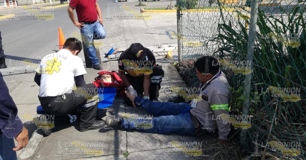 Tuxpan, Ver.- Técnico de la empresa Megacable que se encontraba realizando labores propias de su oficio parado sobre una escalera en un poste de la Comisión Federal de Electricidad fue arrollado por una camioneta y resultó lesionado por lo que tuvo que ser trasladado a la clínica del IMSS para su atención médica.