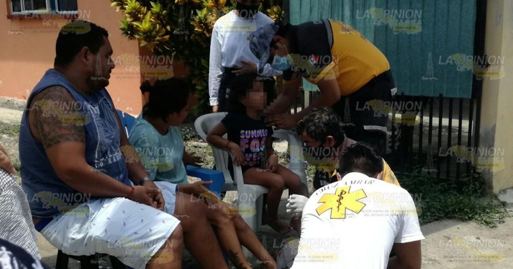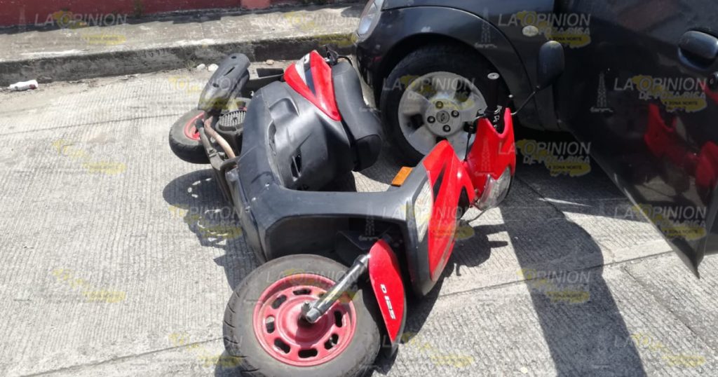 Tuxpan, Ver.- Familia que viajaba en una motocicleta fue arrollada por un automóvil que era conducido por una mujer que salía de la cochera de su casa ubicada en la colonia Enrique Rodríguez Cano, paramédicos de la Cruz Ámbar los trasladaron al Hospital Civil Emilio Alcázar para su atención médica.