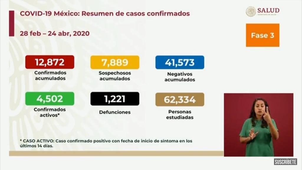 Ciudad de México.- Esta cantidad representa un incremento de 152 respecto del día anterior. En la conferencia del viernes se reportó también que el número de casos confirmados es de 12 mil 872.