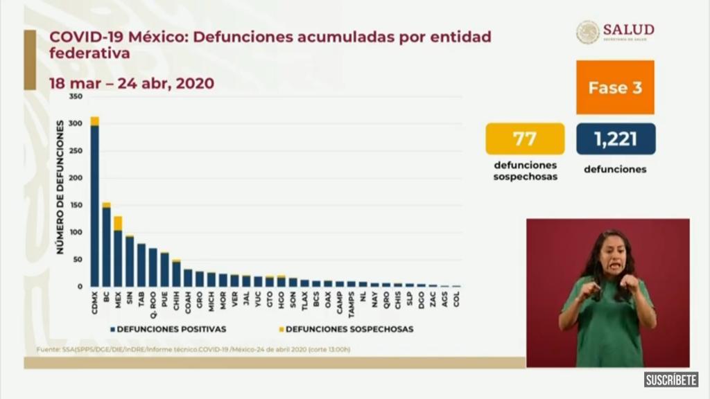 También la capital del país encabeza la lista de defunciones acumuladas por entidad federativa, seguido de Baja California y Estado de México.