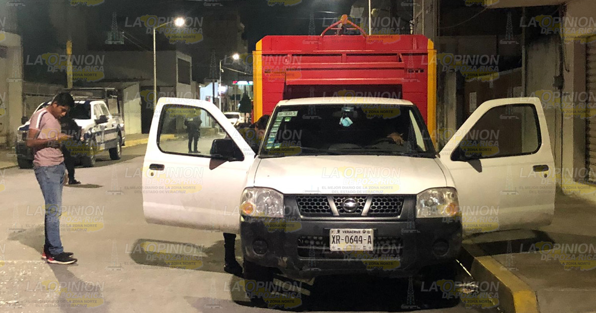 Poza Rica, Ver.- Cuando comía tacos de “muerte lenta” en la colonia Tajín, la madrugada del sábado, el conductor de una camioneta Nissan, tipo Estaquitas, color blanco, con placas de circulación XR -0644 del estado de Veracruz fue cuestionado por efectivos de Seguridad Pública, ya que el vehículo contaba con reporte de robo en Plataforma México.