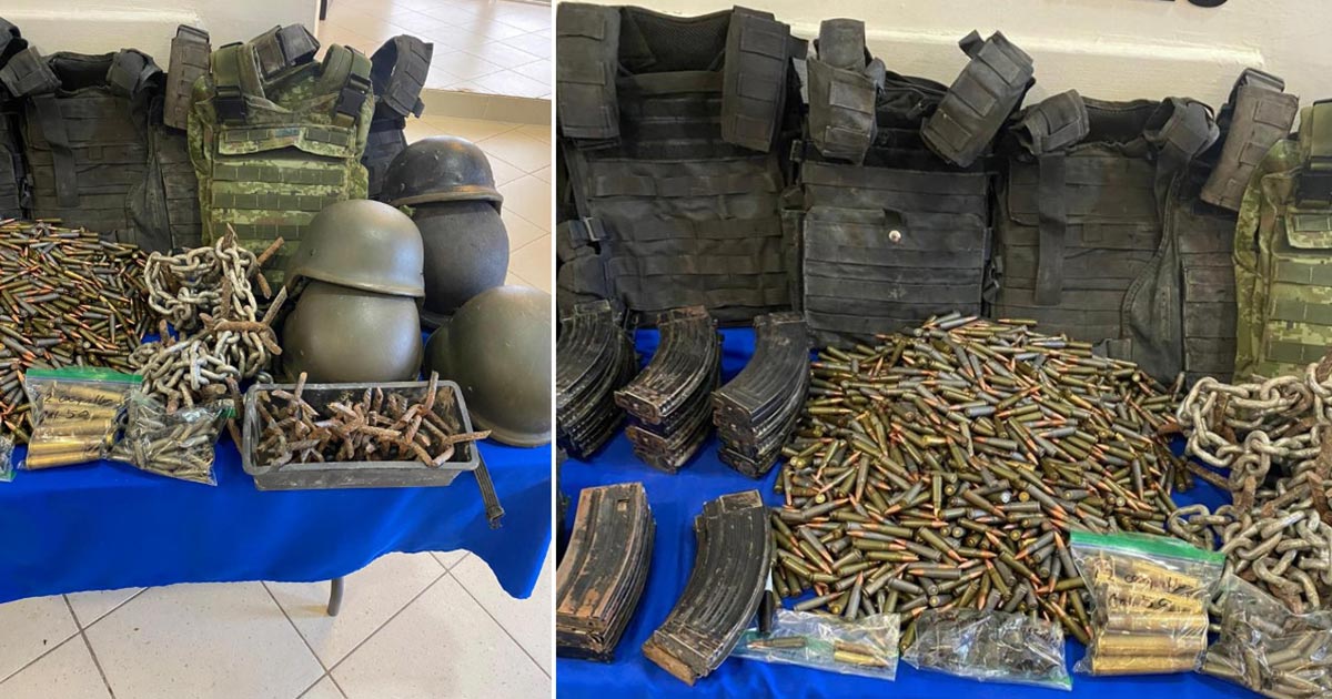 Al inspeccionar cada uno de los vehículos se encontró en su interior 10 chalecos balísticos, cinco cargadores, 83 ponchallantas, un artefacto explosivo con forma cilíndrica, y los cargadores y cartuchos ya mencionados.