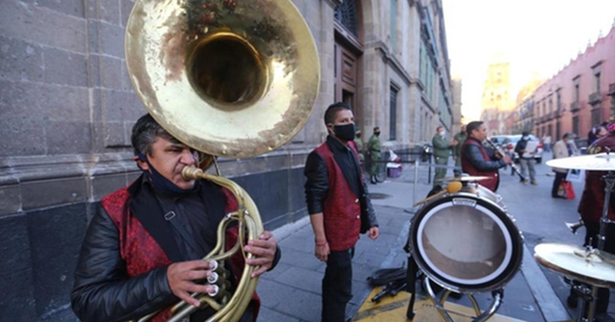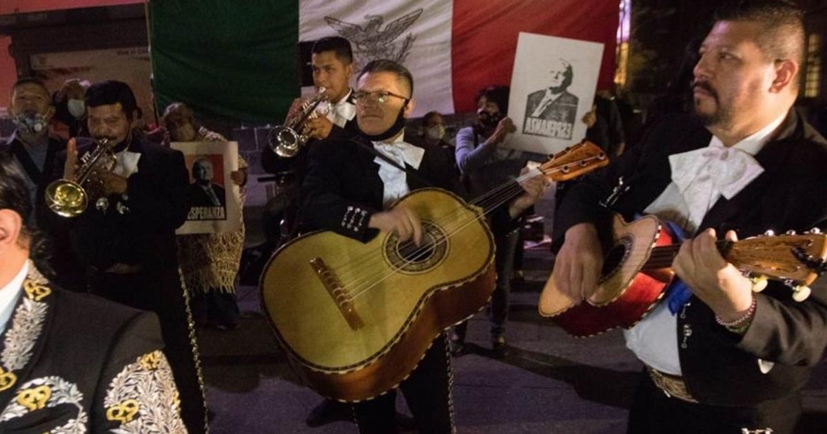 A pesar de que el mandatario pidió a la gente evitar sorprenderlo, el grupo que llegó en la tarde a la puerta de acceso a Palacio Nacional, donde vive López Obrador, llegó con mariachi para que entonara famosas canciones como El Rey, de José Alfredo Jiménez, y Amor Eterno, de Juan Gabriel.