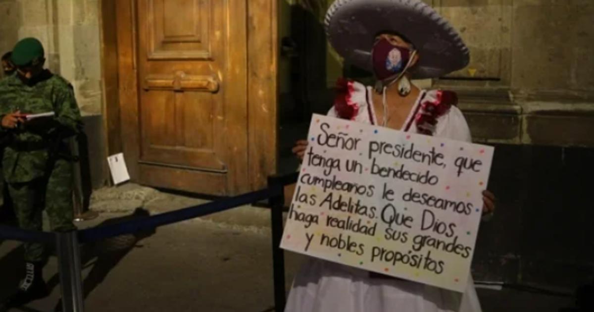 Ciudad de México.- Varios grupos de simpatizantes del presidente Andrés Manuel López Obrador se reunieron afuera de Palacio Nacional desde la tarde del jueves y la madrugada de este viernes para llevarle una serenata y cantarle Las Mañanitas por su cumpleaños número 67.