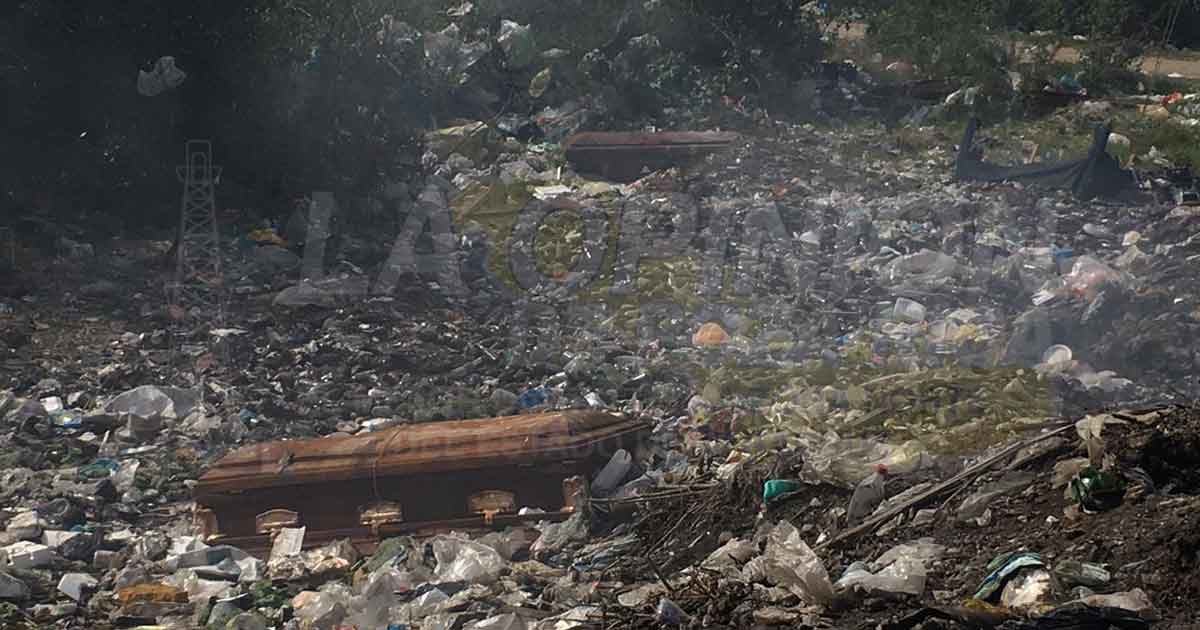 Por si fuera poco, se desconoce quién se ha encargado de tratar de convertir en cementerio el basurero, puesto que hay al menos seis ataúdes en descomposición y otros de los que ya queda poco para que desaparezcan por completo.