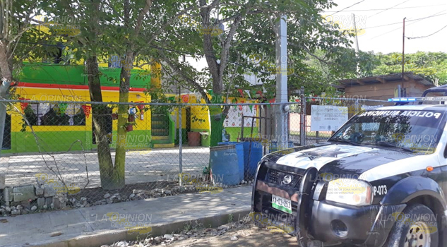 TÚXPAM.- El robo a un Jardín de Niños, de la colonia Las Granjas, de esta localidad, provocó que elementos de la Policía Municipal desplegaran un operativo mediante el cual pudieron capturar a par de sujetos en poder de una motocicleta y herramienta de dudosa procedencia además recuperaron un televisor que aparentemente forma parte de los objetos robados al plantel educativo.