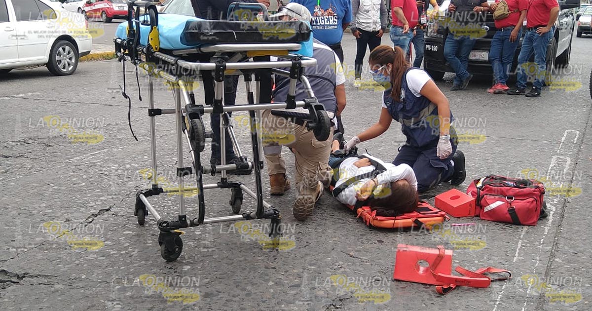 Poza Rica, Ver. – Una joven mujer fue presuntamente atropellada por un vehículo, luego del percance algunas personas se acercaron para ayudarla y solicitaron el apoyo de la unidad de emergencia.