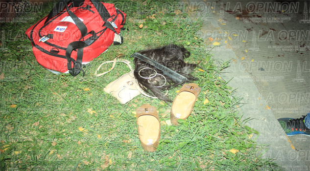 Prueba del fuerte impacto, es que a la unidad responsable se le desprendieron las placas YKR-83-25 del Estado de Veracruz, mismas que dejó abandonadas por la policía.