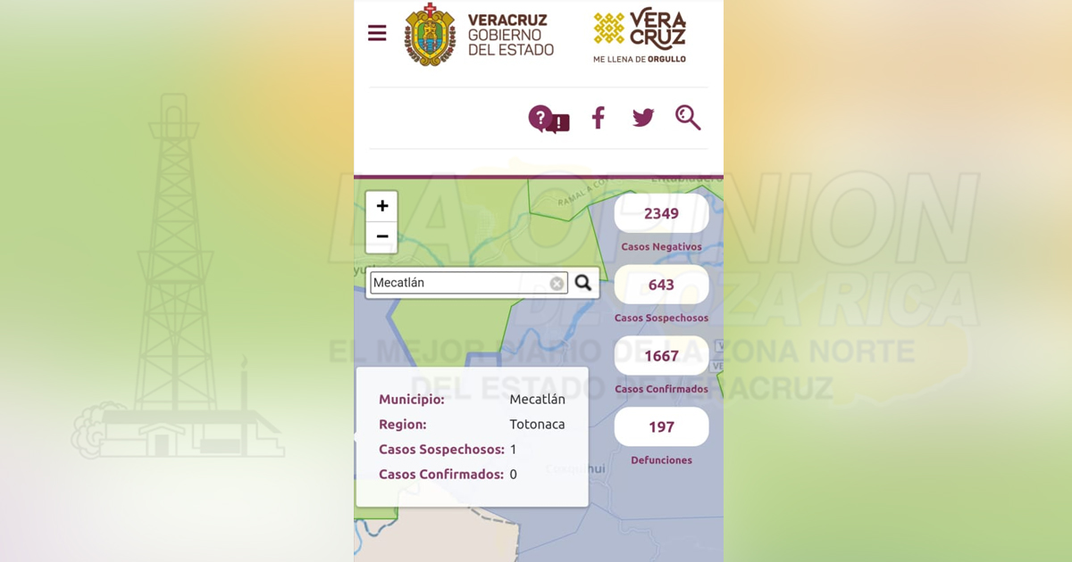En el municipio de Mecatlán hay un caso sospechoso y se esperan los resultados para ver si suman a los casos positivos o resulta negativo.