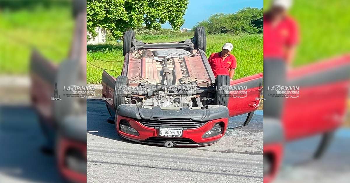 Un Renault volcó después de ser chocado por una camioneta Dodge Ram de una tintorería, que se encontraba presuntamente a…
