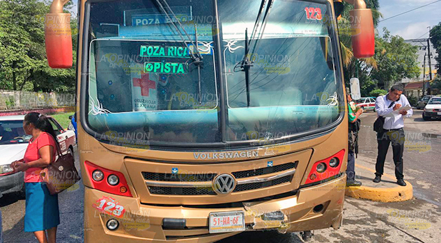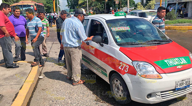 Una mujer y dos hombres uno de ellos el conductor resultaron lesionados, tras ser impactados por el conductor de un autobús de pasajeros, mientras viajaba en un vehículo de alquiler marcado con el número 273 de Tihuatlan.