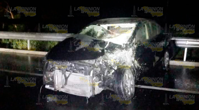 Martínez de la Torre, Ver.- Aparatoso accidente se registro en entronque de la autopista Poza Rica-Cardel, donde un autobús de pasajeros y un automóvil chocaron dejando como saldo cuantiosas perdidas materiales.
