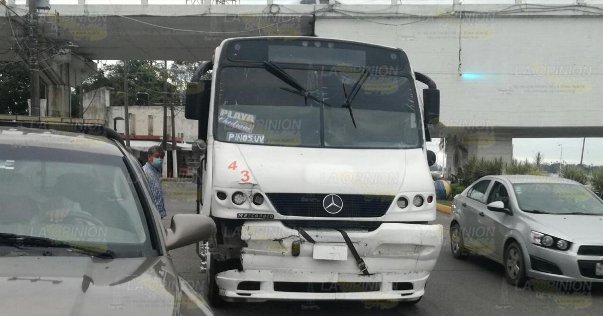 Tuxpan, Ver.- Cuantiosos daños materiales fue el saldo que arrojó un aparatoso choque entre un autobús de pasajeros y una camioneta; elementos de Tránsito y Vialidad tomaron conocimiento del percance.