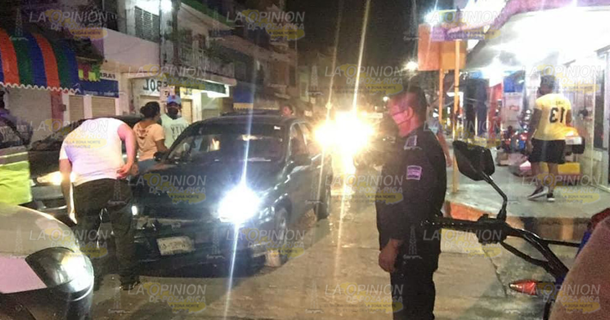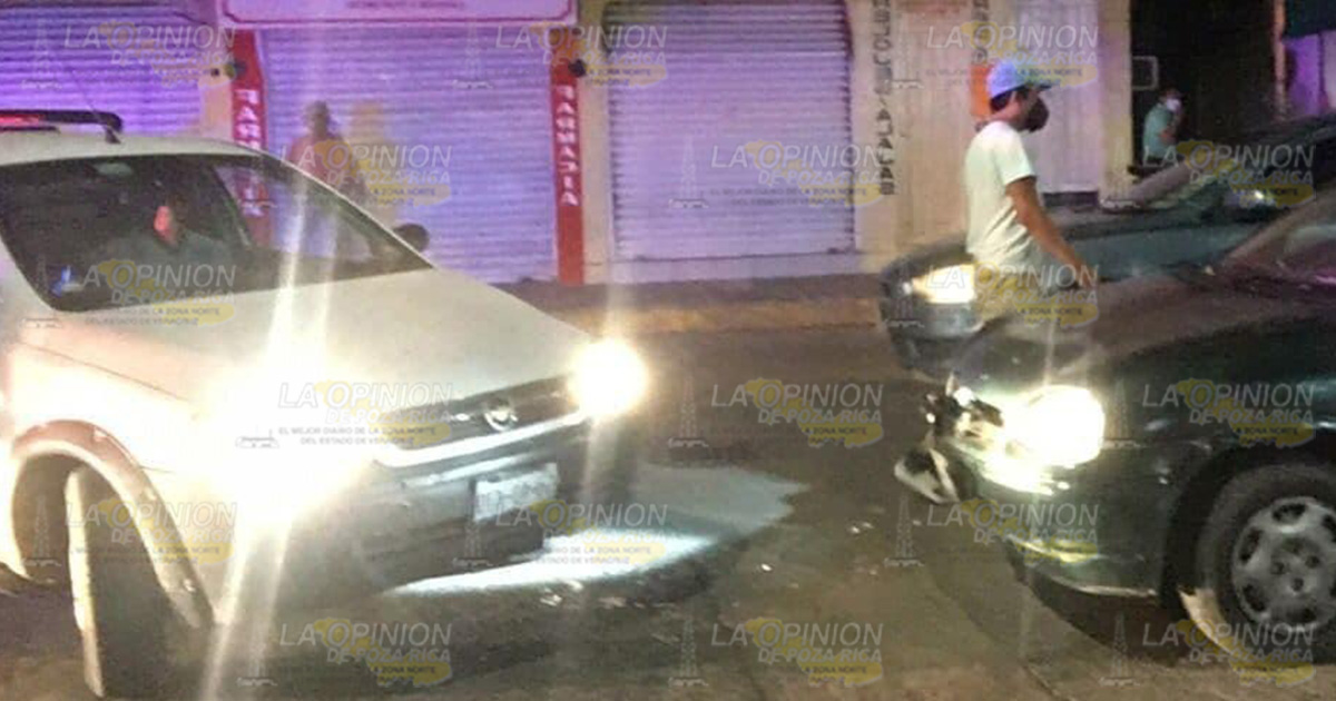Álamo, Ver.- El conductor de un vehículo compacto que intentó darse a la fuga luego de que personal de Tránsito le marcara el alto terminó chocando contra una camioneta pick up sobre la avenida Independencia la noche del jueves.