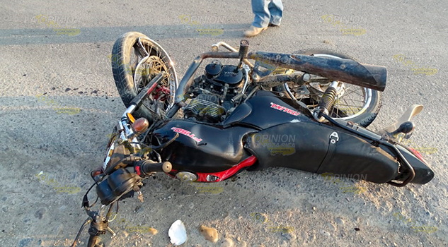 Álamo, Ver.- Minutos después de las 5 de la tarde, un vehículo Toyota que circulaba de Sur a Norte a la altura de la comunidad Dos Arbolitos, ocasionó accidente cuando pretendía ingresar a dicha comunidad cortándole la circulación a una motocicleta Italika.
