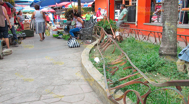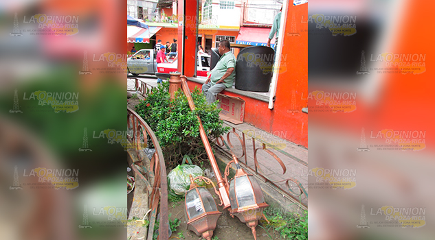 ÁLAMO, VER.- Daños severos al Parque Bicentario ocasionó un ebrio automovilista la madrugada de este domingo, luego de meter su vehículo en el angosto pasillo de ese centro de esparcimiento, ubicado a un costado de la Parroquia de Nuestra Señora de los Dolores.