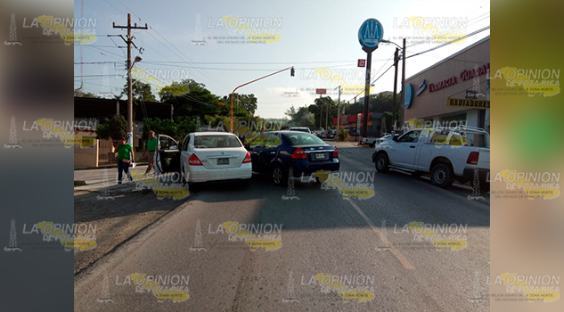 Tantoyuca, Ver.- Se registró un fuerte choque entre dos vehículos, sobre la carretera municipalizada, a la altura de conocida Farmacia, donde por fortuna no hubo personas lesionadas, pero si daños materiales, valuados en varios miles de pesos, pues ambos vehículos son de modelo reciente.