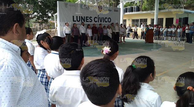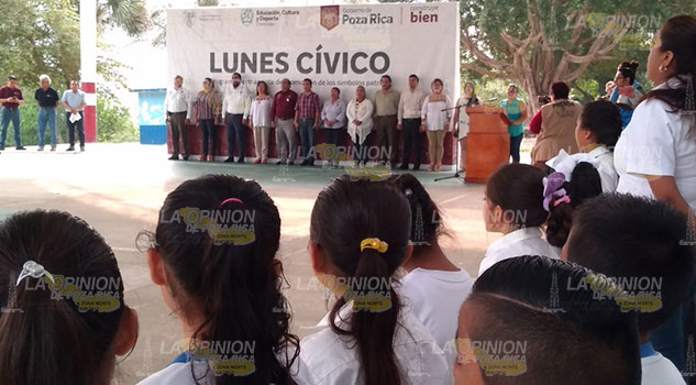 El alcalde Francisco Javier Velásquez Vallejo e integrantes de su comuna, encabezaron el acto cívico en la escuela primaria “Óscar Torres Pancardo”.
