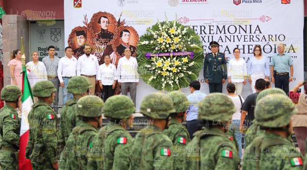 Poza Rica¿, Ver.- Con la participación del Séptimo Batallón de Infantería, autoridades municipales de Poza Rica y el Ejército Mexicano, conmemoraron el 172 aniversario de la gesta heroica de los niños héroes de Chapultepec, rindiendo un homenaje a los 6 cadetes mexicanos que murieron en la Batalla de Chapultepec el 13 de septiembre de 1847 durante la guerra Mexico – Estados Unidos.