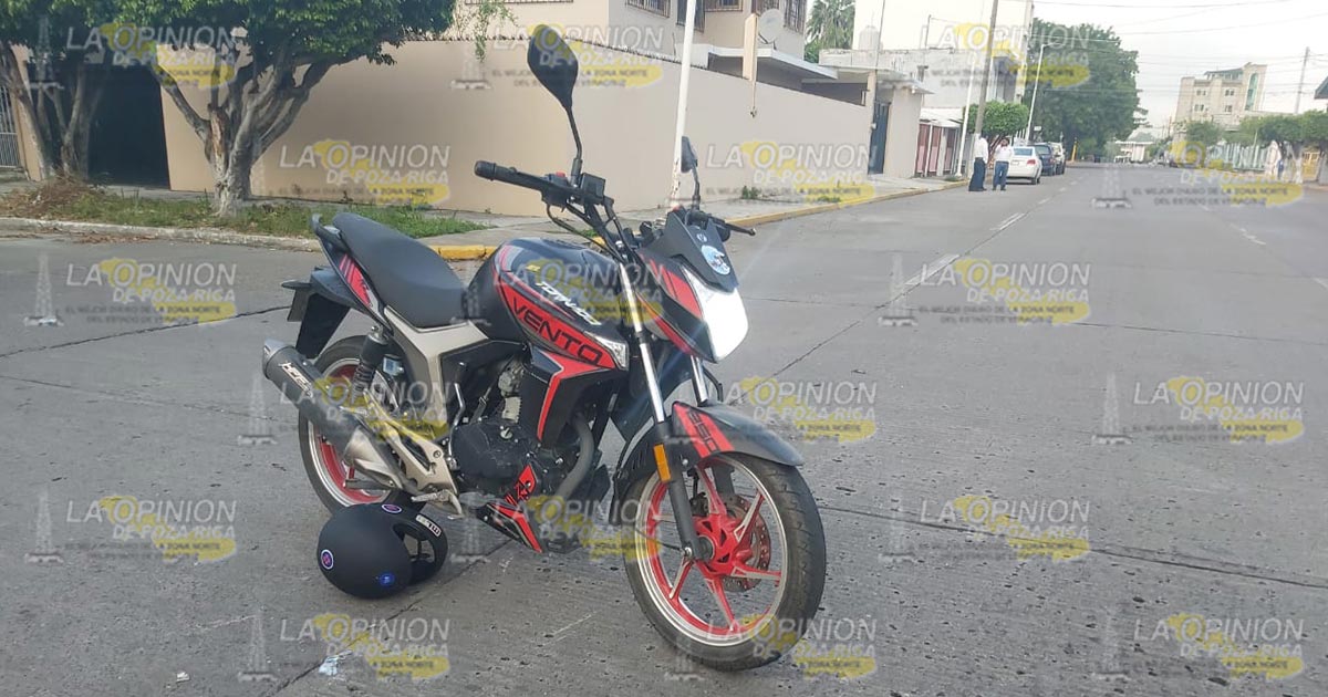 Poza Rica, Ver.- Al suelo fue a dar un sujeto, luego de que su motocicleta fuera derribada por un automóvil particular en un crucero peligroso de la colonia 27 de Septiembre.