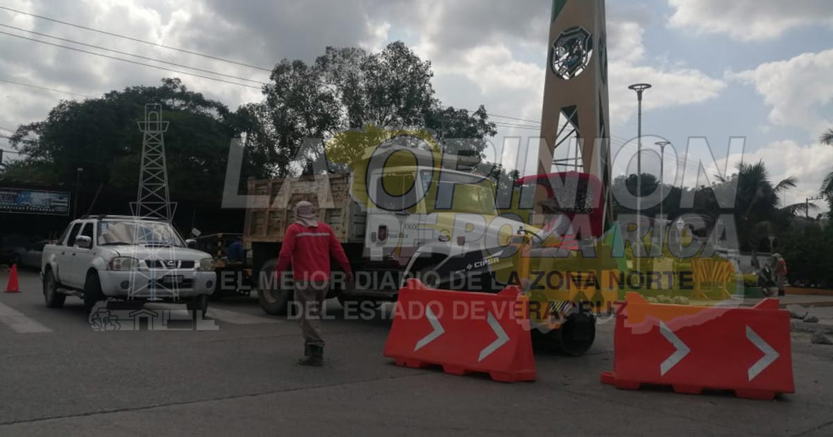 Poza Rica, Ver .- Empleados municipales el área de obra pública se encuentran bacheado parte del Boulevard Ruiz Cortines a la altura de la Colonia La Rueda, obstruyendo la mitad de este acceso, lo que provocando poca fluidez vial, en todo este tramo.