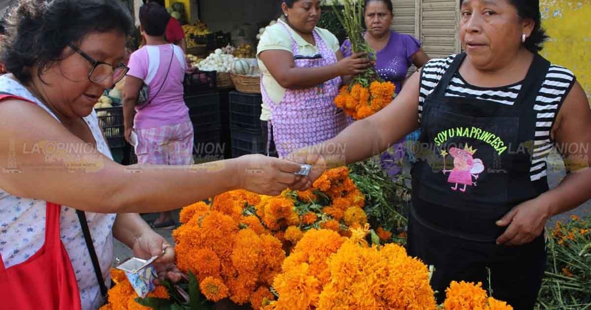 Poza Rica, Ver.- Comerciantes de calle Fransisco Javier Mina, de la colonia Ricardo Flores Magón, sufren los efectos de la economía, de acuerdo a los precios que compran ellos sus productos en la ciudad de Atlixco, Puebla, lugar de donde proviene la flor de sempasuchitl y mano de león.