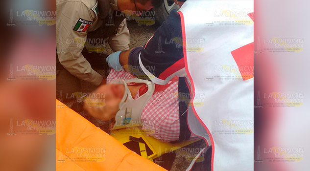 Pánuco, Ver.- Un bebé de escasos 8 meses de nacido, así como un adulto lesionados y cuantiosos daños materiales, fue el saldo que arrojó un aparatoso accidente carretero registrado la mañana del lunes.