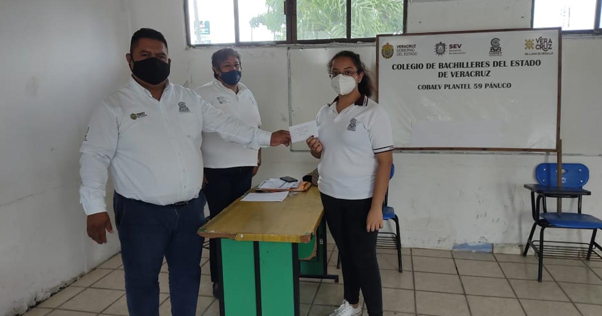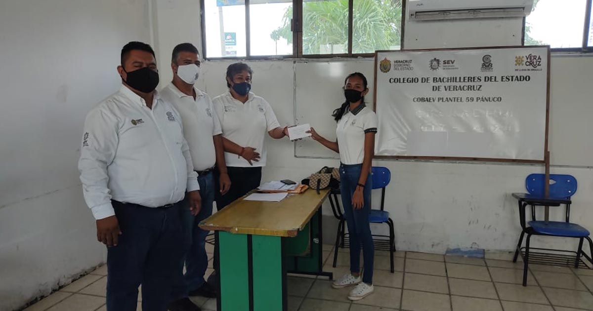 Pánuco, Ver.- Incentivan a estudiantes destacados del Colegio de Bachilleres del Estado de Veracruz (COBAEV), plantel 59, al ser alumnos con mejores promedios y dentro del programa enfocado a las becas líderes.