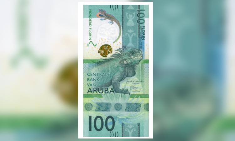 El objetivo del Banco Central de Aruba era un rediseño completo de la serie de billetes, el primero en casi 30 años. El resultado es bastante sorprendente, incluyendo un nuevo formato vertical, hermosos elementos artísticos de la cultura, flora y fauna de Aruba e incluso una nueva denominación de 200 florines, que reemplazó a los antiguos 500 florines.El diseño de 100 florines es de color verde esmeralda, presenta una iguana en la cara, y mujeres bailando con cintas en el reverso verde y azul. Es más largo que un billete de 20 euros y un poco más ancho, pero más corto que los billetes estadounidenses.