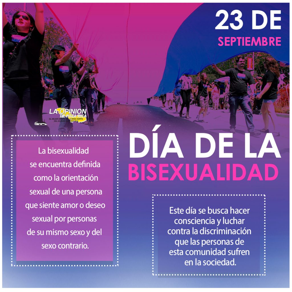 El Día Internacional de la Bisexualidad, también conocido como Día de la Visibilización de la Bisexualidad, se celebra cada 23 de septiembre para hacer consciencia y luchar contra la discriminación que las personas de esta comunidad sufren en la sociedad, pues muchas veces se niega su existencia.