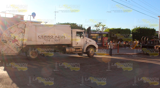 Cerro Azul, Ver.- Al vencer el plazo que el ayuntamiento les había otorgado a los comerciantes que habían instalado sus puestos en una calle que se ubica a un costado del parque primero de mayo, durante la madrugada del lunes fueron instalados varias unidades de limpia pública para obstruir esta arteria por lo que los comerciantes optaron por colocar sus vendimias en las banquetas de la avenida independencia.