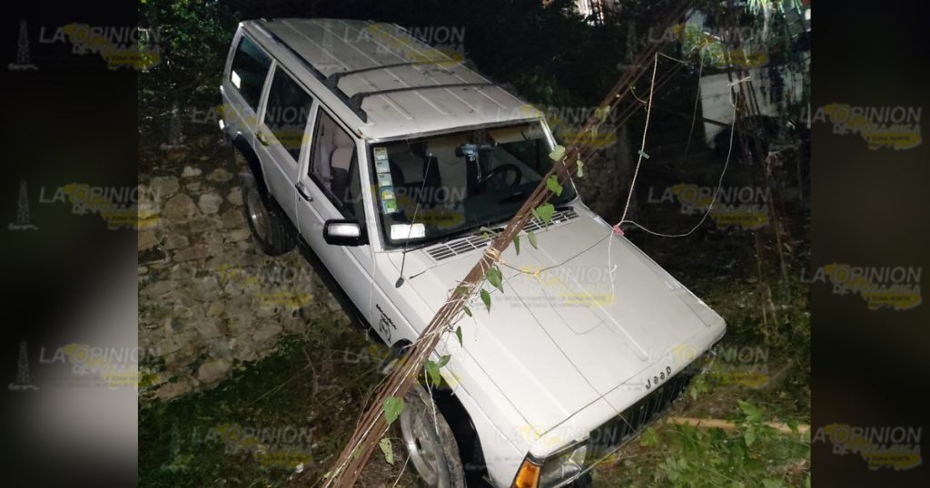 Se trata de una camioneta Jeep Cherokee, de color Blanco, con placas YJP-20-09, el cual era manipulado por el señor Martín R. T., quien al parecer manejaba bajos los influjos del alcohol, por lo que al transitar sobre la calle en mención, supuestamente se quedó dormido y cayó a un barranco, donde por suerte una obra negra lo detuvo para no llegar al fondo.