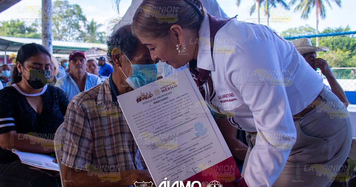 Álamo, Ver. – Con la finalidad de dar certeza jurídica a las familias del municipio, el Gobierno Municipal que encabeza Lilia Arrieta realizó la entrega de 603 títulos de propiedad en las comunidades de Mesón Molino y de Tincontlán y alrededor de mil registros de depósitos sucesorios.