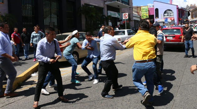 En Xalapa, bandos identificados con el regidor Pedro Alvarado, seguidor de José de Jesús Mancha, y con el diputado local Omar Guillermo Miranda, aliado de Joaquín Guzmán Avilés, se enfrascaron a golpes por una supuesta “compra de votos” en las proximidades del Comité Directivo Estatal.