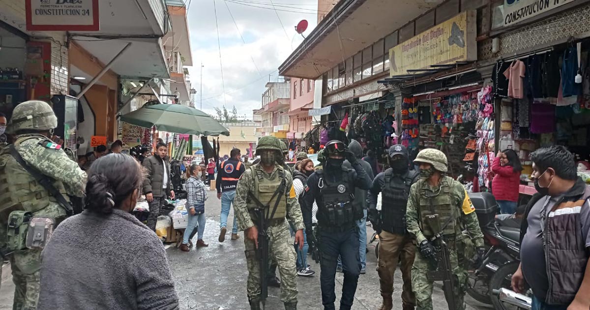 Xalapa, Ver.- En pronta acción el Ejército Mexicano activó el Operativo Cohete al lado de efectivos de la Secretaría de Seguridad Pública en el primer cuadro de Xalapa.