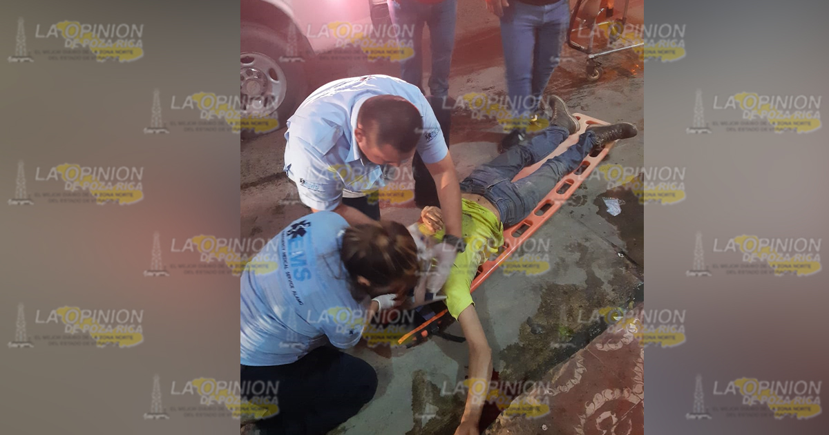 Álamo, Ver. – Un joven motociclista en estado crítico de salud y un adulto con fractura expuesta de pierna, fue el cruento resultado de un brutal accidente ocurrido la noche del jueves en el primer cuadro de la ciudad, luego de que el primero arrolló con su vehículo a la segunda persona.