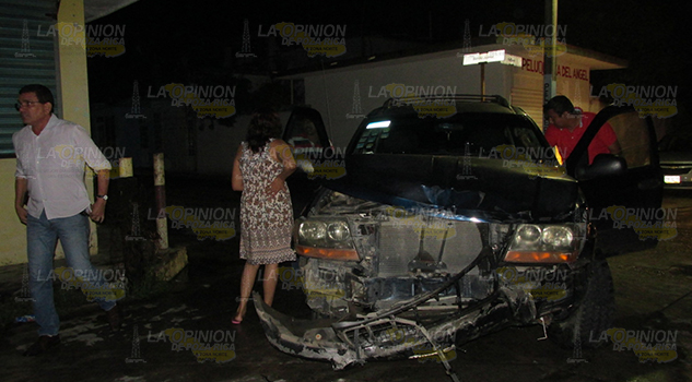 Álamo, Ver.- Un fuerte encontronazo entre una camioneta Jeep tipo Cherokee y una Ford Lobo dejó por saldo cuantiosos daños materiales la noche del viernes; los hechos ocurrieron en la céntrica esquina de calle Bucareli y Benito Juárez.