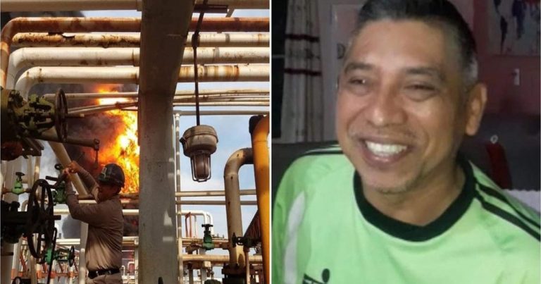 El trabajador petrolero Deckar Israel Hernández Soto, cuya imagen se viralizó cerrando las válvulas de succión de la refinería…