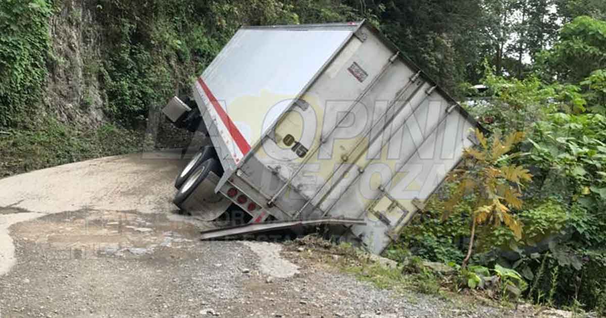 Zontecomantlán Ver.- Un tráiler quedó atravesado sobre la carretera en prolongada curva a la altura del manantial de Ixtatetla del municipio de Huayacocotla ,por lo que se interrumpió la circulación vehicular por un lapso de 10 horas .
