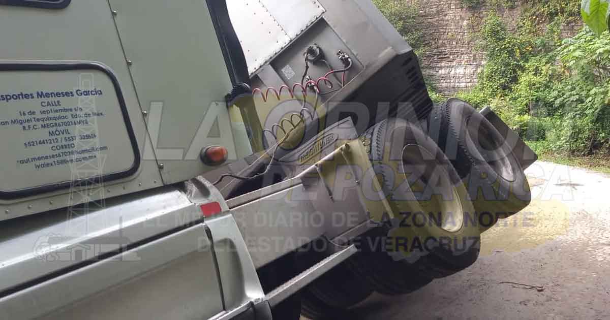 El accidente se registró alrededor de las 12 horas del día sábado debido a los tremendos baches que presenta la carretera federal que comunica entre los municipios de Zontecomatlán y Huayacocotla. El accidente provocó que quedaran varados vehículos del servicio de transporte público en sus diferentes modalidades y carros particulares, pero después de difíciles maniobras de dos operadores de grúas se retiró el pesado tráiler y aproximadamente a las 22 horas del sábado quedó liberada la carpeta asfáltica .