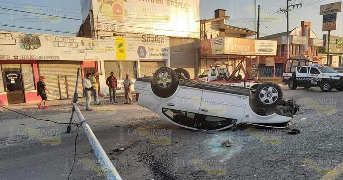 El percance se registró alrededor de las 06:30 horas de esta mañana, sobre el tramo del libramiento de Martínez de la Torre, a la altura de la colonia Plaza Verde, por donde circulaba un Volkswagen, de la línea Jetta, con placas YLB 73-95 del estado, del cual su conductor conducía a exceso de velocidad y al perder el control terminó por estrellarse contra el poste del alumbrado público y termino volcado.