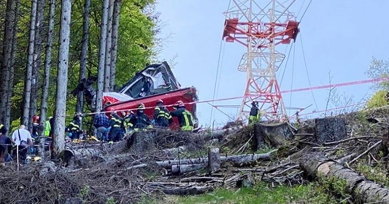 Piamonte, Italia.- La caída de un teleférico en la región de Piamonte, al norte de Italia, dejó por lo menos 13 personas muertas