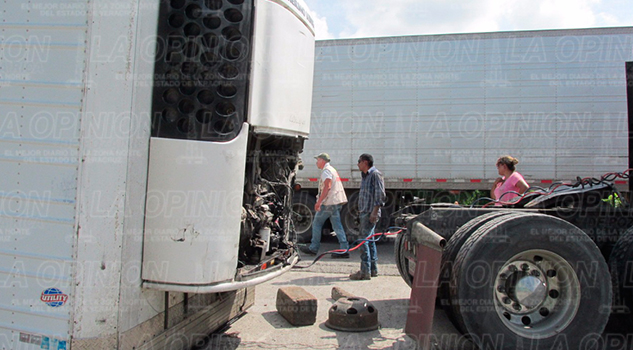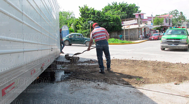 Álamo, Ver.- Una caja Thermo king con 22 toneladas de chayote se desprendió del tráiler que lo remolcaba y terminó sobre el pavimento de acceso a la avenida Independencia, frente a la colonia Pozo 50. El accidente propició el derrame de decenas de litros de diesel debido a que el tanque de combustible se dañó al impactar sobre el piso. El suceso ocurrió esta tarde a las 16:00 horas.
