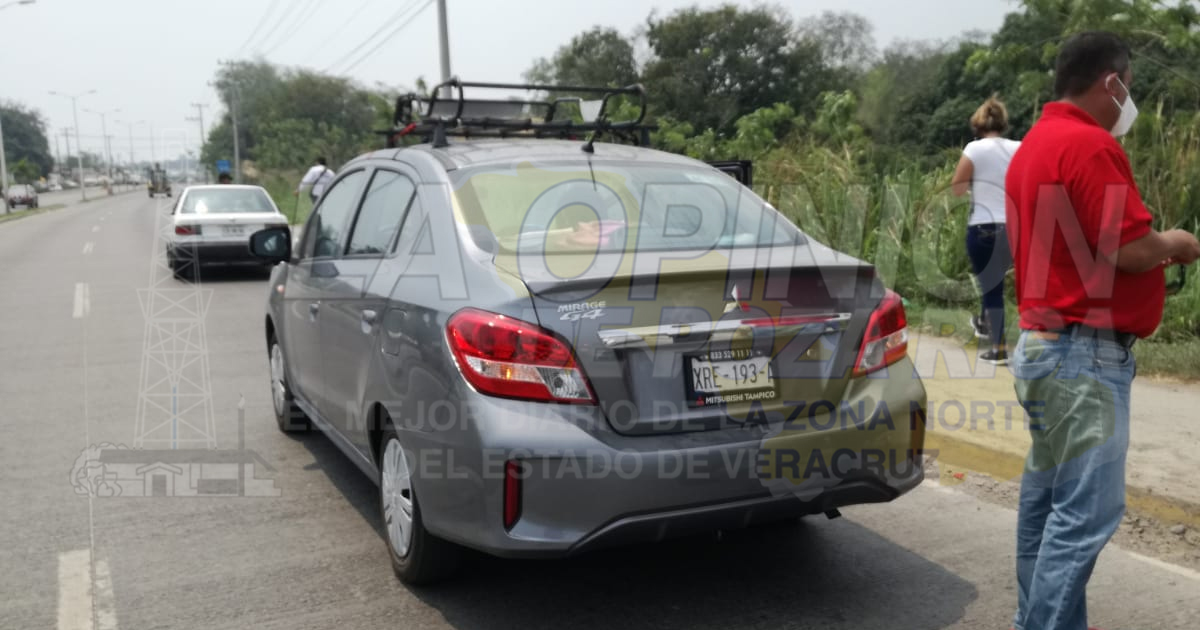 Tuxpan, Ver.- El choque de dos automóviles registrado en el libramiento Adolfo López Mateos, de esta localidad dejó como saldo daños materiales mínimos; autoridades de vialidad no pudieron intervenir debido a que los involucrados llegaron a un acuerdo entre particulares.