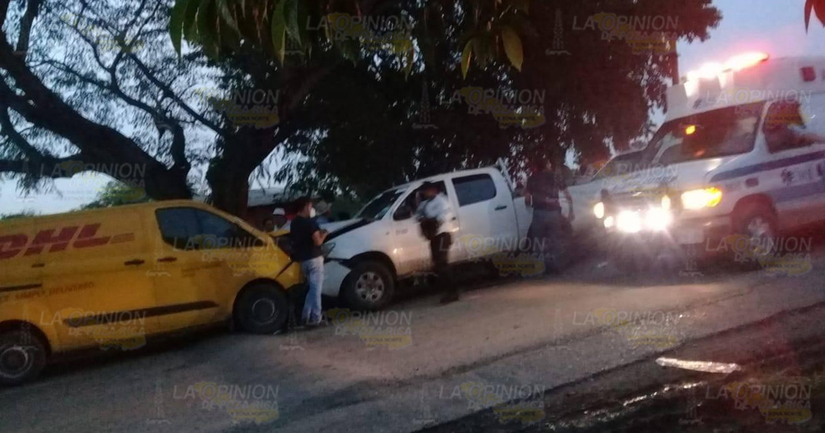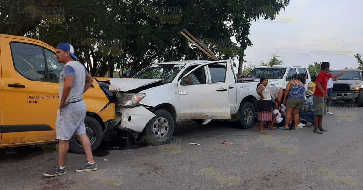 Álamo, Ver. – Un fuerte accidente se presentó la tarde de este lunes en la carretera Álamo-Ixhuatlán de Madero, cuando una camioneta de mensajería de la empresa DHL se impactará de frente contra una pick-up en la que viajaban integrantes de la avanzada del PAN, hasta el momento se desconoce el número de lesionados.