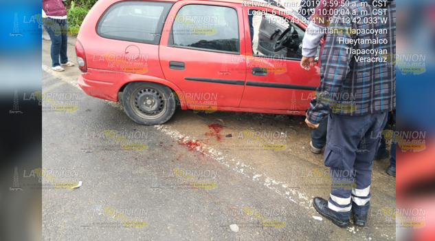 Tlapacoyan, Ver.- Hace unos minutos por la carretera Federal que conduce a Teziutlán a la altura del lugar conocido como San Luis se registró aparatoso accidente que dejó como saldo cuantiosas pérdidas materiales y una persona lesionada.