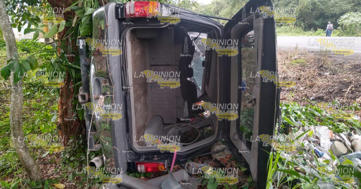 Papantla, Ver.- Aparatoso accidente se registró la mañana de este viernes sobre la carretera Papantla Poza-Rica a la altura de la localidad de Escolín en donde una camioneta particular terminó fuera de la cinta asfáltica no hubo personas lesionadas.