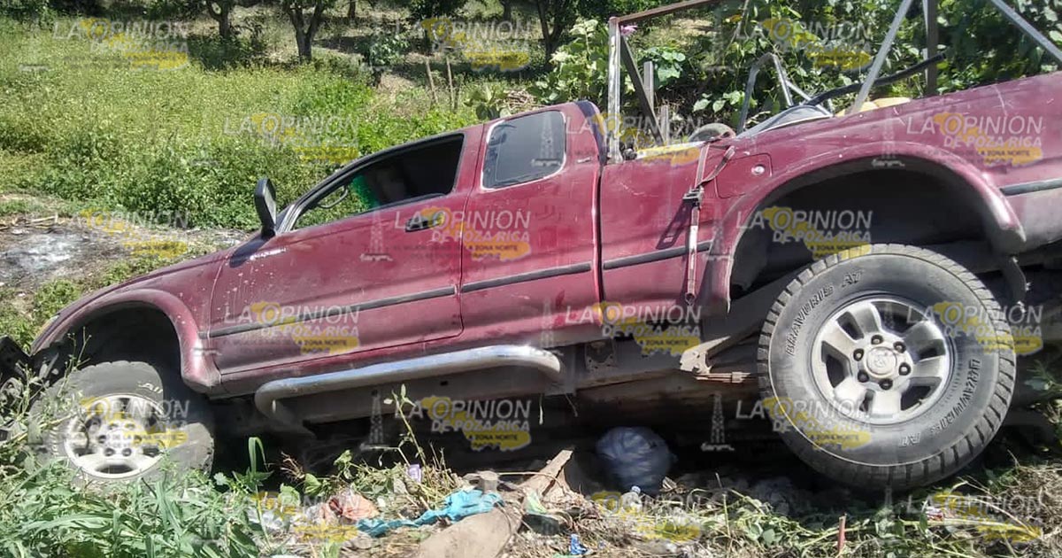 Se trata de una camioneta Toyota Tacoma de modelo atrasado, color vino, con placas de circulación XX-35-067, la cual presuntamente sufrió la falla en una rotula, saliendo de la cinta asfáltica, a pesar de lo aparatoso del accidente solo se presentaron daños materiales y no pérdidas humanas.