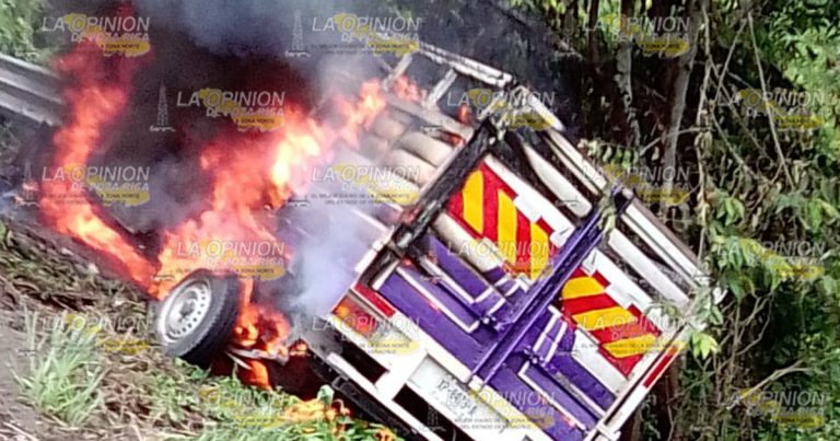 Camioneta termina envuelta en llamas