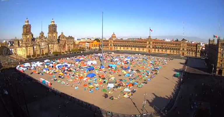 Ciudad de México.- El campamento del Frente Nacional Anti-AMLO (FRENAAA) continúa instalado en el zócalo capitalino a pesar de que su dirigente, el empresario Gilberto Lozano, prometió que este fin de semana retirarían las casas de campaña. A través del sitio de WebCams se puede observar que los opositores al presidente Andrés Manuel López Obrador … Sigue leyendo Campamento de FRENAAA sigue en el zócalo